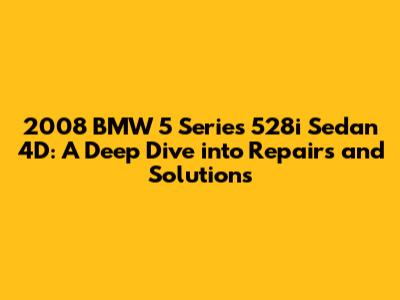 Hey car enthusiasts! Ever found yourself scratching your head over your 2008 BMW 528i? Well, you're not alone. This guide is your ultimate buddy for understanding and tackling those pesky issues that can pop up. We're diving deep into the 2008 BMW 5 Series 528i Sedan 4D, covering everything from common problems to straightforward fixes. Whether you're a seasoned DIYer or just starting out, we'll break down the repair process in simple terms, helping you keep your ride running smoothly. Let's get started, shall we?