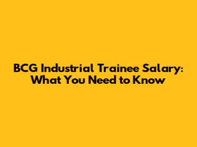 BCG Industrial Trainee Salary: What You Need To Know
