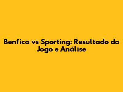 Benfica Vs Sporting: Resultado Do Jogo E Análise