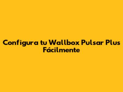Configura Tu Wallbox Pulsar Plus Fácilmente