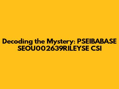 Decoding The Mystery: PSEIBABASE SEOU002639RILEYSE CSI