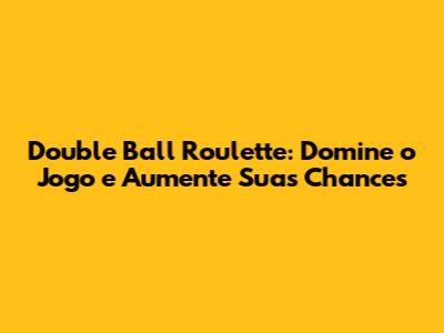 Double Ball Roulette: Domine O Jogo E Aumente Suas Chances