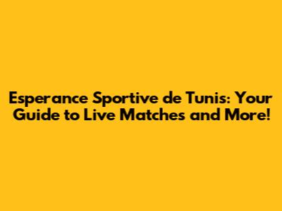 Catching the Action: Where to Watch Esperance Sportive de Tunis Live