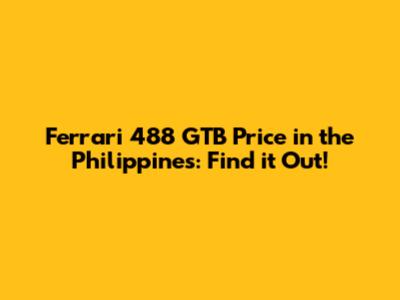 Finding a Ferrari 488 GTB for sale in the Philippines can be a bit of a treasure hunt. Here are some places to start your search: