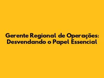Gerente Regional De Operações: Tudo O Que Você Precisa Saber