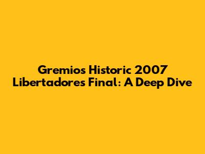 Hey guys! Let's rewind the clock to 2007 and dive into the amazing journey of GrĂȘmio in the Copa Libertadores. This was a year etched in the memories of the Tricolor GaĂșcho faithful, filled with incredible matches, nail-biting finishes, and ultimately, a quest that fell just short of the ultimate glory. Get ready to relive the magic, the heartbreak, and everything in between! The 2007 Libertadores campaign saw GrĂȘmio, a team brimming with talent and passion, make an unforgettable run to the final. This journey wasn't just about winning matches; it was about embodying the spirit of a club with a rich history and a fervent fanbase. From the early stages to the knockout rounds, GrĂȘmio showcased a blend of tactical prowess and sheer determination that captivated fans across South America and beyond. The atmosphere at the OlĂ­mpico Monumental, GrĂȘmio's home stadium, was electric, a cauldron of noise and support that fueled the team's performances. The players, under the guidance of their coach, played with a sense of purpose and unity, fighting for every ball and leaving everything on the pitch. This was a team that truly represented its fans, its city, and its colors. The roar of the crowd, the passion of the players, and the drama of the matches created a narrative that transcended the sport. It was a story of hope, resilience, and the unwavering pursuit of a dream – to lift the coveted trophy of the Copa Libertadores. Let's delve into the key moments, the memorable players, and the overall impact of this unforgettable campaign.