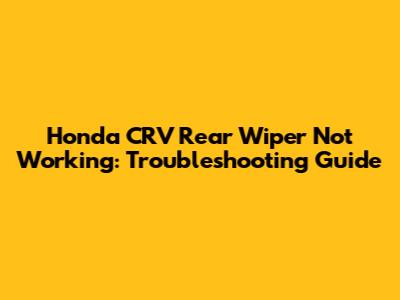 Honda CRV Rear Wiper Issues: Troubleshooting Guide