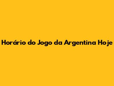 Horário Do Jogo Da Argentina Hoje