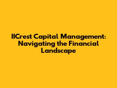 Hey there, financial enthusiasts! Ever wondered how to make your money work harder for you? Let's dive into the world of IICrest Capital Management, a company dedicated to helping individuals and institutions achieve their financial goals. We'll explore what they do, the strategies they employ, and how they can potentially be your partner in building a brighter financial future. Get ready to unlock the secrets of smart investing and wealth management! This is a good read for you guys, so pay attention!