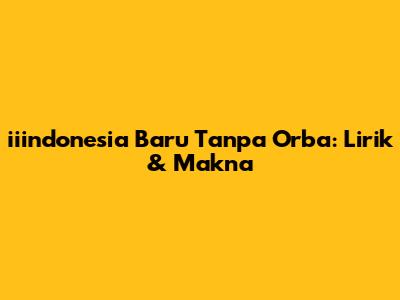 Hey guys! Have you ever stumbled upon a song that just resonates with a particular moment in history? Today, we're diving deep into a song that does just that: "iiindonesia Baru Tanpa Orba." This isn't just a tune; it's a powerful anthem reflecting a pivotal time in Indonesian history. We'll explore the lyrics, dissect the meaning, and understand the context that makes this song so significant. So, grab your headphones and let's get started!