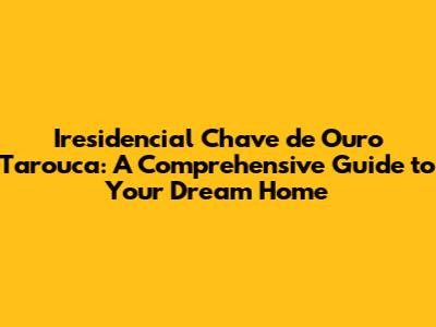 Hey there, future homeowners and real estate enthusiasts! Are you dreaming of owning a piece of paradise in the beautiful region of Tarouca? Well, you've landed in the right place! This comprehensive guide is your golden key (pun intended!) to navigating the exciting world of Iresidencial Chave de Ouro Tarouca. We're going to dive deep into everything you need to know, from understanding the local market to finding the perfect property and making your dream a reality. So, grab a coffee, sit back, and let's unlock the secrets of Tarouca real estate together!