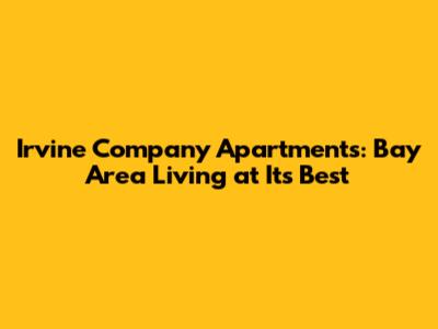 Hey guys! Thinking about moving to the Bay Area and want to find a place that's not just a roof over your head, but a real community? Let's dive into what Irvine Company Apartments in the Bay Area have to offer. We're talking prime locations, top-notch amenities, and that whole 'peace of mind' thing that comes with a reputable landlord. Let's get started, shall we?