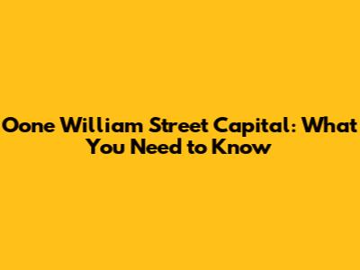 Oone William Street Capital: What You Need To Know