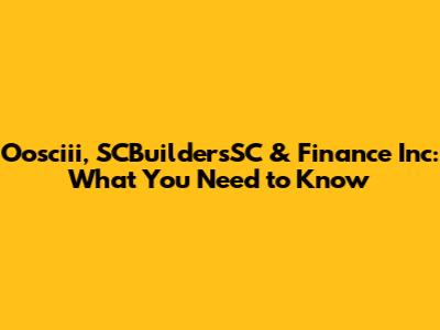 Oosciii, SCBuildersSC & Finance Inc: What You Need To Know