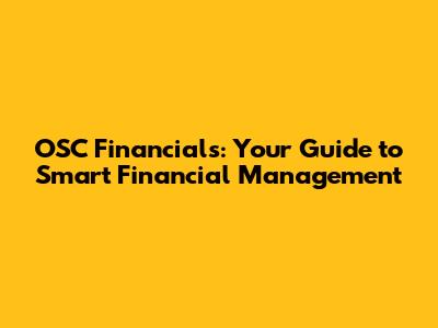 OSC Financials: Your Guide To Smart Financial Management