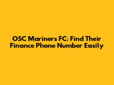 OSC Mariners FC: Find Their Finance Phone Number Easily