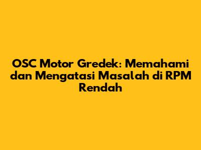 OSC Motor Gredek: Mengatasi Masalah Di RPM Rendah
