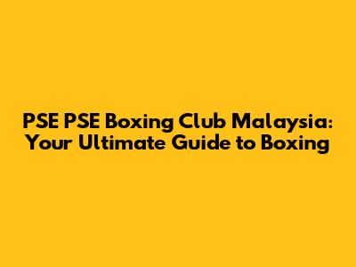 PSE PSE Boxing Club Malaysia: Your Fight Guide