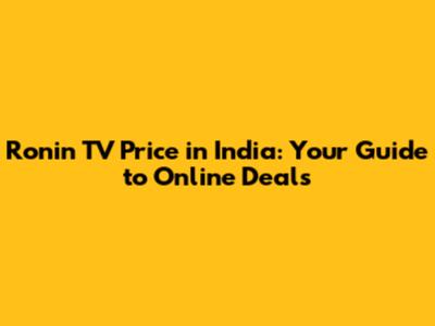 Unveiling Ronin TV Prices in India: Where to Look