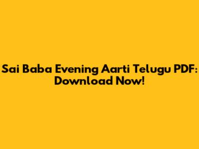 The Sai Baba Evening Aarti Telugu PDF is a valuable resource for devotees seeking to connect with Sai Baba and experience inner peace. Its accessibility, convenience, and cultural significance make it a cherished part of daily worship. By downloading the PDF and incorporating the aarti into your routine, you can invite the blessings of Sai Baba into your life and find solace in His divine presence. So go ahead, download the PDF, and immerse yourself in the devotion of Sai Baba. You will surely feel the positive impact in your life!