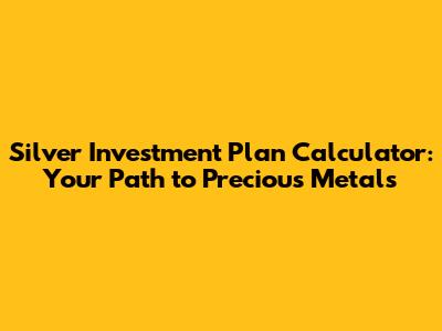 Silver Investment Plan Calculator: Your Path To Precious Metals