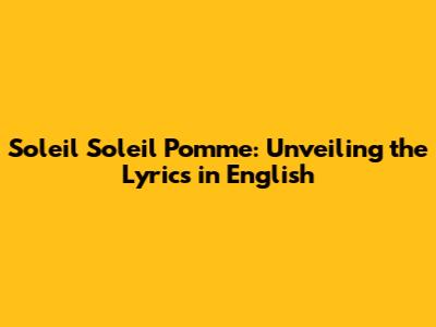 Hey music lovers! Ever found yourself vibing to a catchy tune but completely lost when it comes to the lyrics? We've all been there, right? Today, we're diving deep into the world of "Soleil Soleil Pomme," a song that's been making waves, and breaking down the lyrics in English so you can sing along and truly appreciate the artistry behind it. We will cover the meaning, the origin of the song, and offer our take on the best parts. Let's get started!
