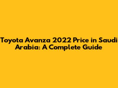Toyota Avanza 2022 Price In Saudi Arabia: A Complete Guide