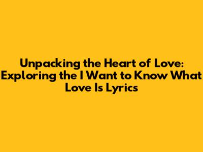 Unpacking The Heart Of Love: Exploring The I Want To Know What Love Is Lyrics