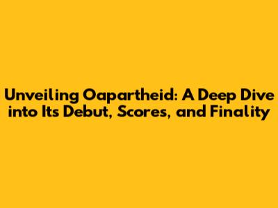 Unveiling Oapartheid: A Deep Dive Into Its Debut, Scores, And Finality