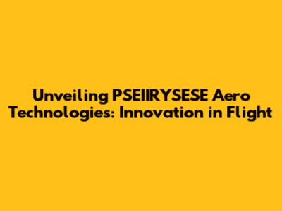 Unveiling PSEIIRYSESE Aero Technologies: Innovation In Flight