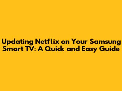 Update Netflix On Samsung Smart TV: Quick & Easy Guide