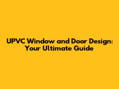 UPVC Window And Door Design: A Comprehensive Guide
